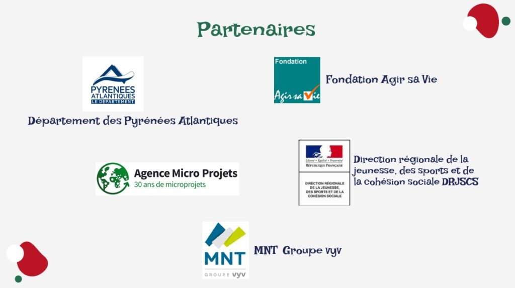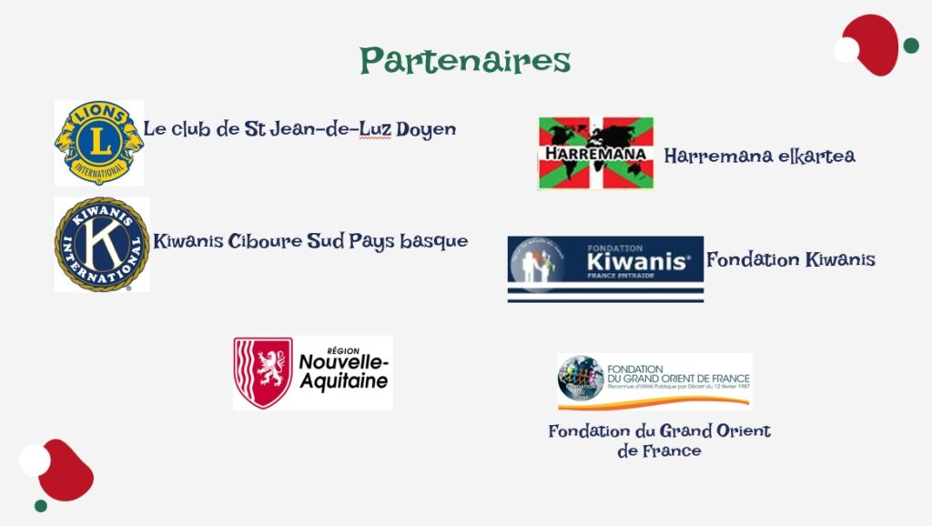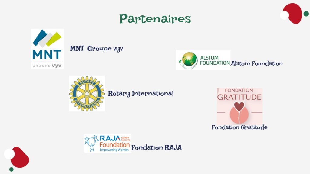 Partenaires Nous exprimons notre plus profonde gratitude à tous nos collaborateurs. Leur engagement, leur solidarité et leur confiance rendent possible chaque action et nourrissent l’espoir d’un avenir plus juste et plus humain.