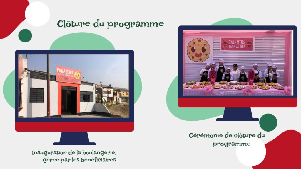 Ils recevront une formation professionnelle par un organisme ministériel chargé de la formation professionnelle, les CETPRO (centres d’enseignement technique productif), dépendant de l’équivalent du Ministère de l’Education nationale. Cette formation s’étalera sur 2 ans et s’adaptera à leurs compétences. Parallèlement, ils recevront d’autres formations et conseils pour les renforcer en tant que futurs micro entrepreneurs.